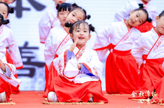 “詩韻·金秋尋蹤”篇章以“文化認(rèn)同”為思政內(nèi)核,以“傳統(tǒng)文化啟蒙和傳承”為思政落點(diǎn),聚焦中秋傳統(tǒng)文化和詩詞經(jīng)典的誦讀與吟唱,多個(gè)學(xué)段小朋友們帶來的《三字經(jīng)》誦讀、古詩串燒、舞蹈、歌曲等,讓現(xiàn)場觀眾在詩詞韻律中感受中華優(yōu)秀傳統(tǒng)文化的獨(dú)特魅力。