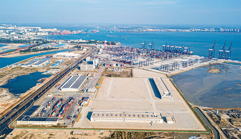 堅持開放合作、互利共贏是中國式現代化的必然要求,黨的二十屆四中全會對擴大高水平對外開放作出重要部署。封關運作是海南自由貿易港建設、打造對外開放重要門戶的重大標志性、節點性工程。圖為2025年1月12日,在海南洋浦經濟開發區拍攝的洋浦港封關運作項目和配套工程。 新華社記者 蒲曉旭/攝